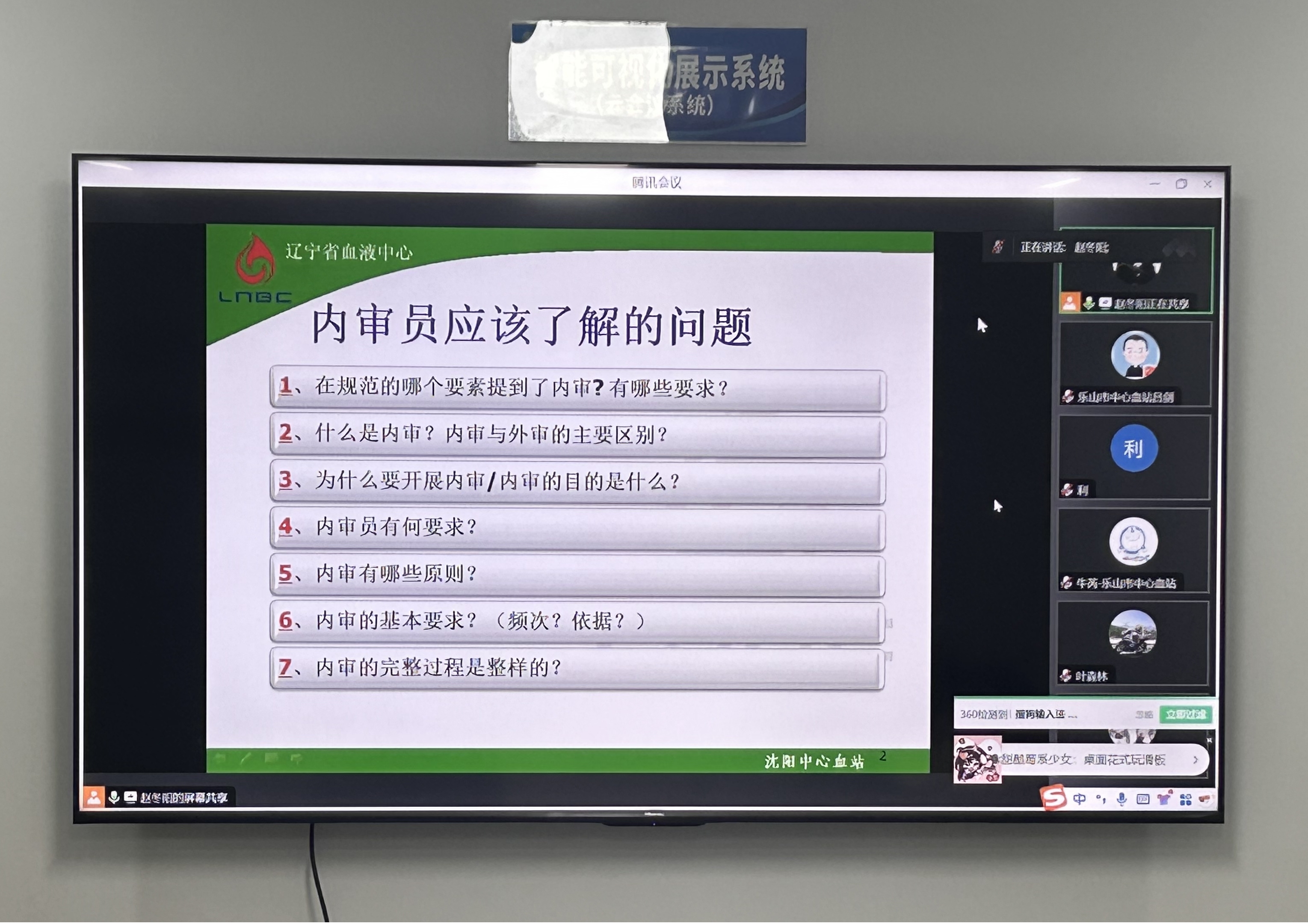 2025 年 3 月 6 日至3月7日,乐山市中心血站组织相关人员参加了北京辉标族资讯中心举办的血站质量管理体系及优化技术规程内审员线上培训班。此次培训旨在进一步加强血站质量管理,提高采供血管理与控制能力及采供血活动的技术能力;提高单位内审员的综合素养和审核能力,持续改进覆盖采供血全过程的血站质量管理体系,提高我站的综合服务能力,确保血液质量安全。