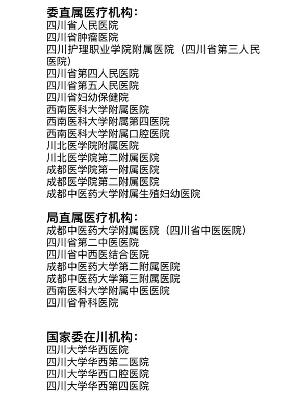 1.国家卫生健康委在川医疗机构、省卫生健康委和省中医药管理局直属医疗机构;