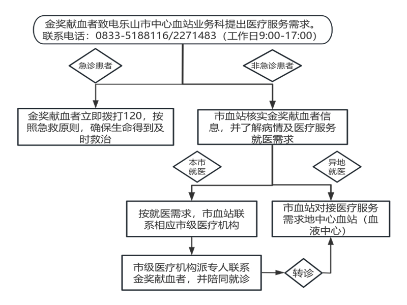 金奖献血者可拨打乐山市中心血站服务电话(0833)5188116、2271483进行政策咨询和服务预约。