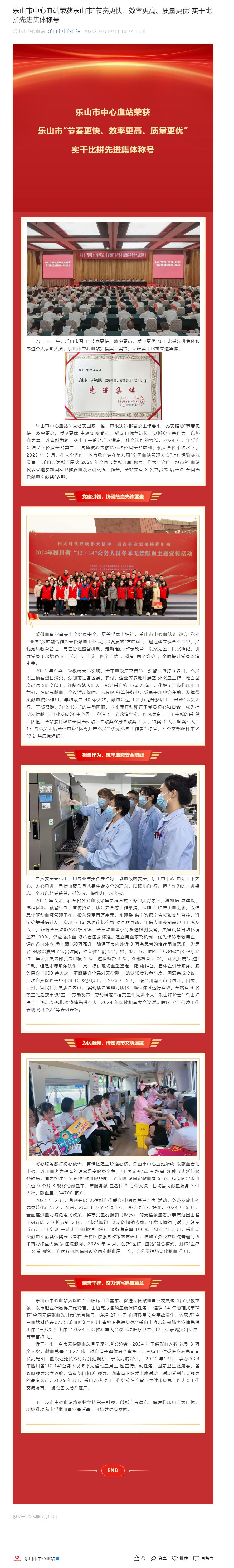 乐山市中心血站荣获乐山市“节奏更快、效率更高、质量更优”实干比拼先进集体称号