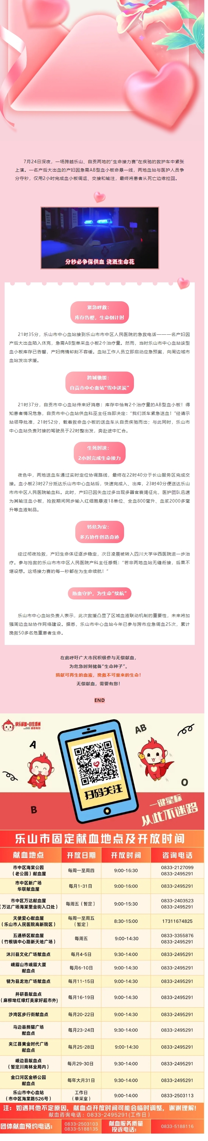 生命接力赛:乐自两地血站深夜驰援 产后大出血产妇转危为安